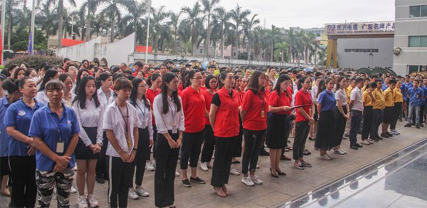7:40分,888集团电缆的全体成员就在办公楼广场整齐列队,以精神饱满状态庆祝党的生日。