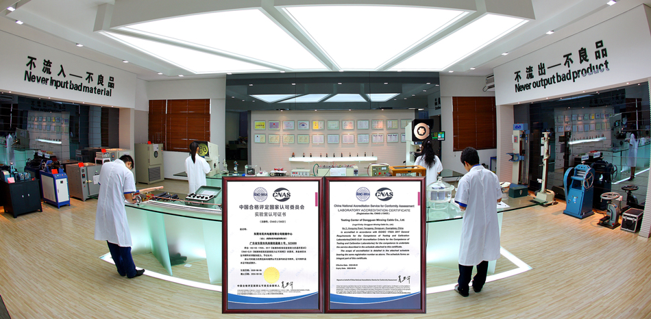 888集团建立了专业的电线电缆检测中心,根据国际标准ISO/IEC17025体系标准开展检测,并且实验室通过了权威的国家认可委CNAS认证;拥有国际领先的检验试验设备100多台(套),检验项目覆盖所有产品的国家GB标准/国际IEC标准的各项指标,可以对产品电气性能、机械性能、高温性能、低温性能、燃烧性能等进行全面检测;建立了全流程的检验控制体系,覆盖原材料检测、半成品检测、成品检测三大环节,有效控制产品质量,确保实现“不流入不良品、不流出不良品”的质量目标。