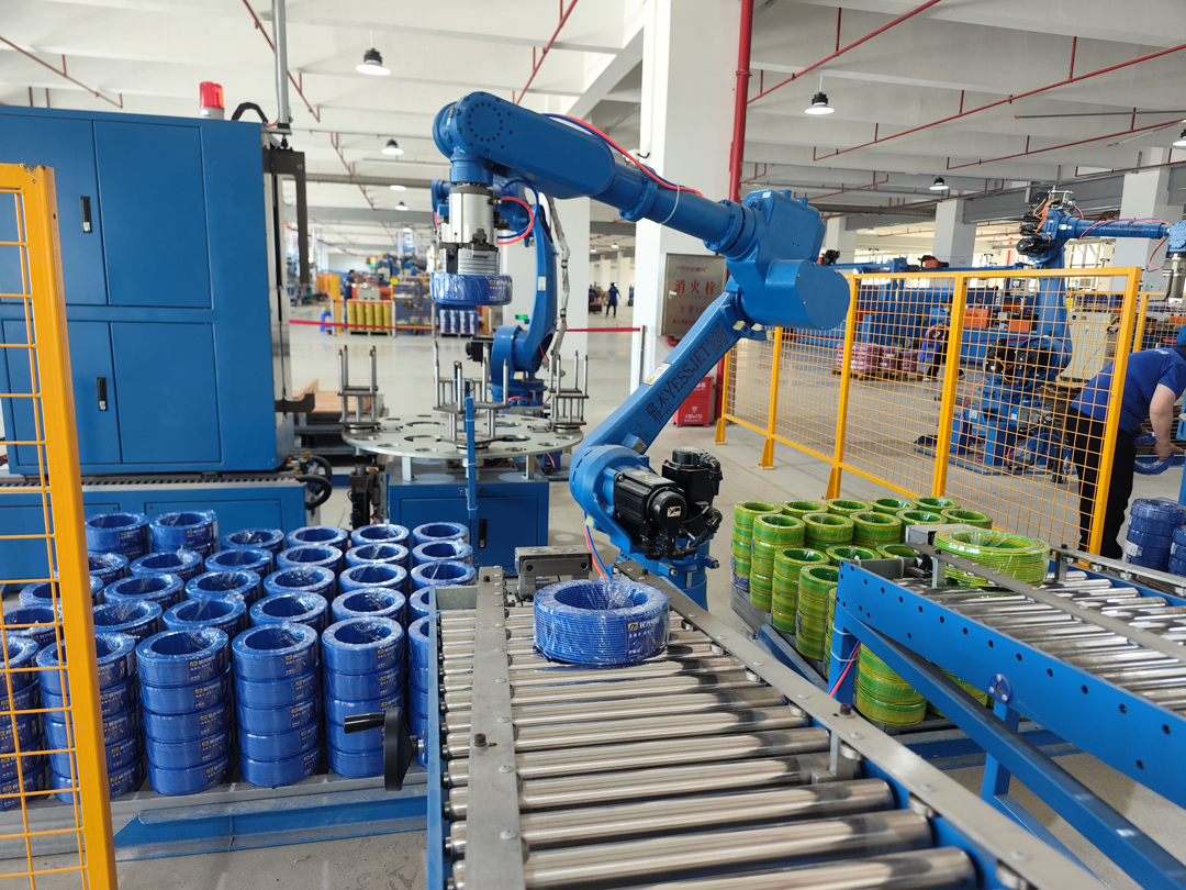 888集团电缆坚持信息化、数字化驱动,构建先进完善的智能制造体系,推动产业结构优化升级。自研MES制造执行系统、QMS质量管理系统等,贯穿产品设计、制造、检验、质量管理、营销、服务全过程信息化管控,实现人、机、资源、信息协同,启用全自动化机械手臂,全面提升生产制造水平。