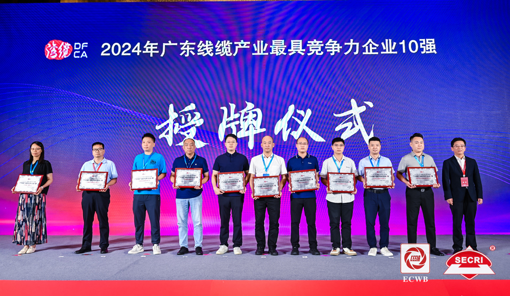 2024年9月24日,由中国电器工业协会电线电缆分会、上海电缆研究所有限公司联合举办的2024中国电线电缆行业大会在上海隆重开幕。当日,大会在万众瞩目中举行了“2024年度中国线缆产业最具竞争力企业”授牌仪式,揭晓了“2024年度中国线缆产业最具竞争力企业100强”、“2024年度中国线缆产业最具竞争力企业20强”、“2024年度广东线缆产业最具竞争力企业10强”等多个榜单,来自全国各地的线缆行业杰出代表齐聚一堂,共同见证这一荣耀时刻。