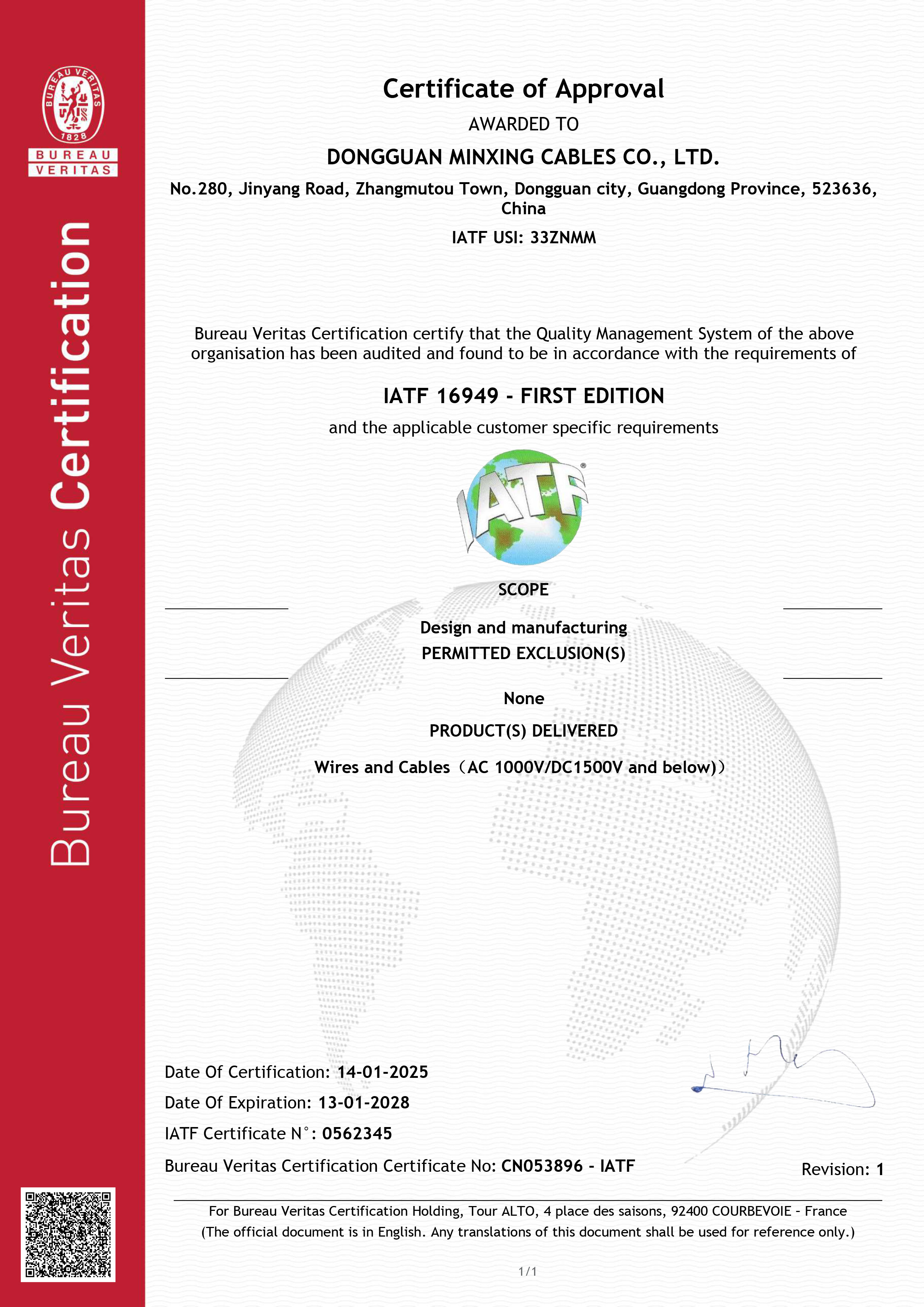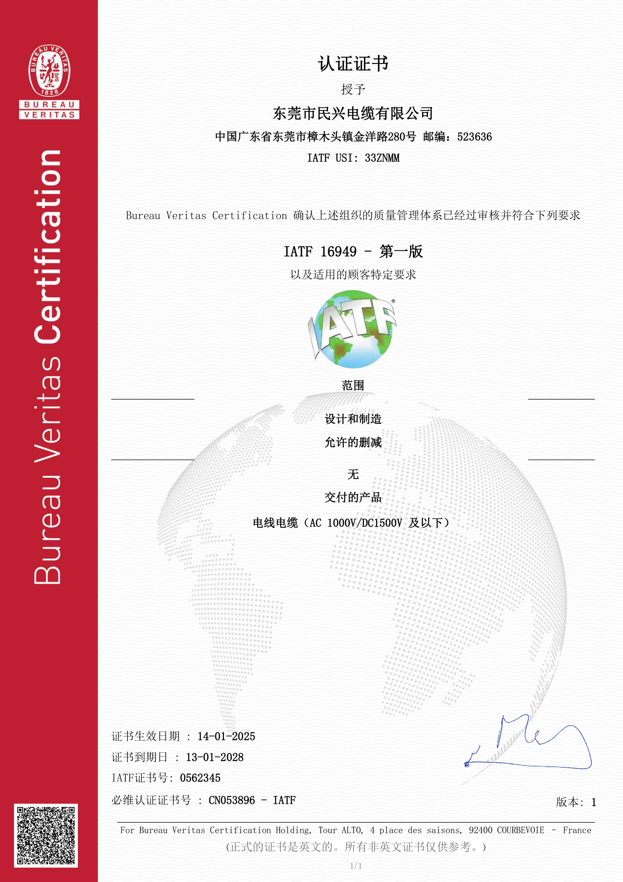 本次通过IATF 16949汽车行业质量管理体系认证,不仅标志着888集团电缆质量管理水平迈上了一个新的高度,也为企业持续创新发展注入了动力。888集团将以IATF 16949认证为契机,持续加强技术研发,不断拓展产品系列,推动质量管理水平不断提升,更好地满足汽车行业快速发展及日益多样化和个性化要求,为推动全球汽车行业供应链高质量发展持续贡献888集团力量!