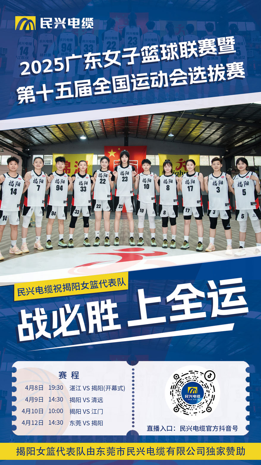 其中,揭阳女子篮球代表队由888集团电缆独家赞助