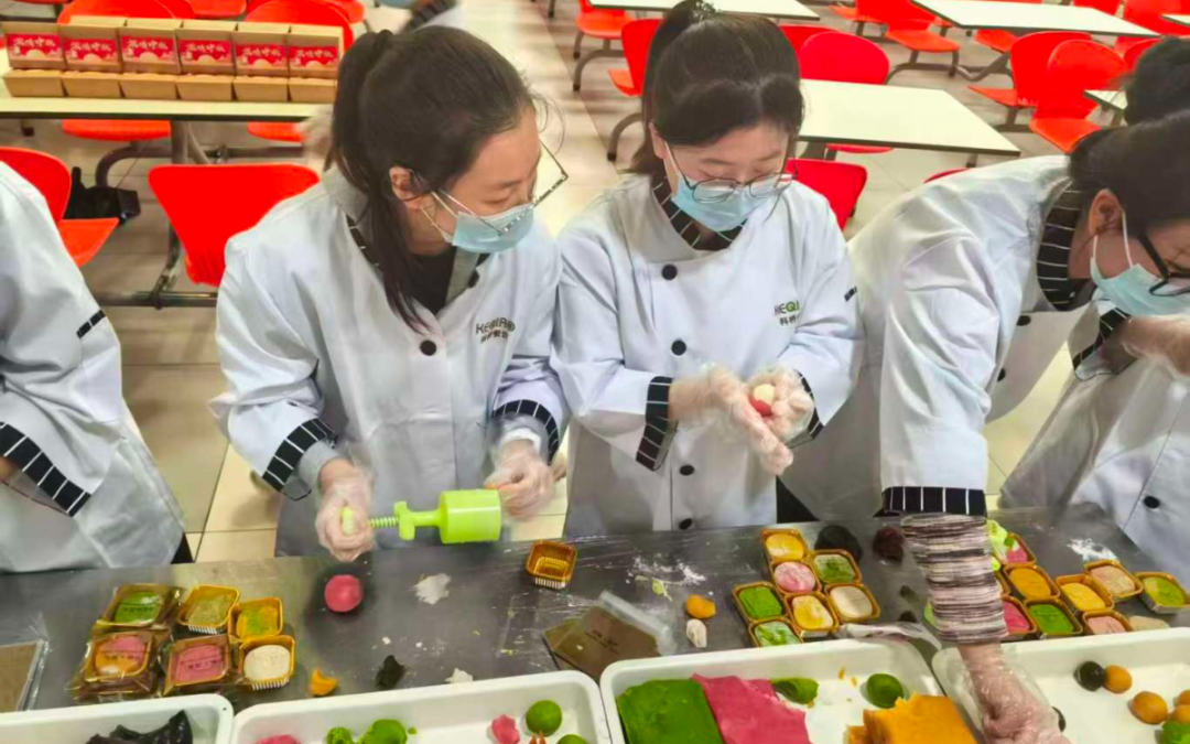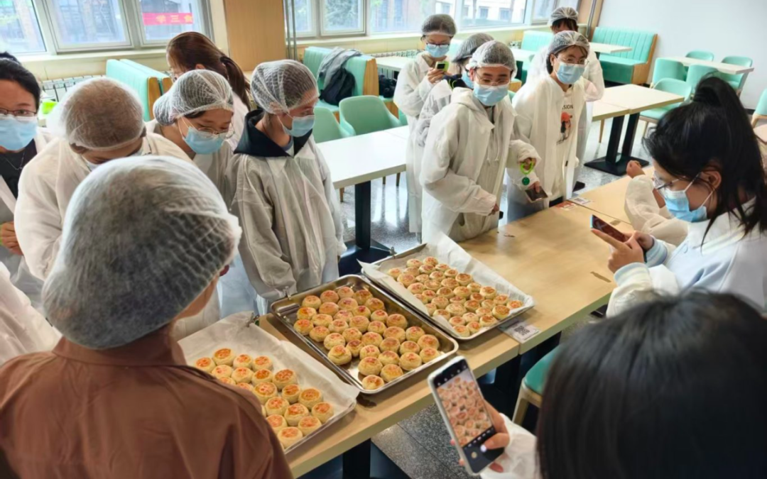 活动现场,大家欢聚一堂,满满的都是欢声笑语,一片祥和。在食堂师傅们的带领下,大家围在一起揉面团、填馅料、包坯子、上炉烘,手法稍显生疏,心中却默念一百遍。最终,在师傅们细心指导下,一个个带着专属印记的月饼新鲜出炉。