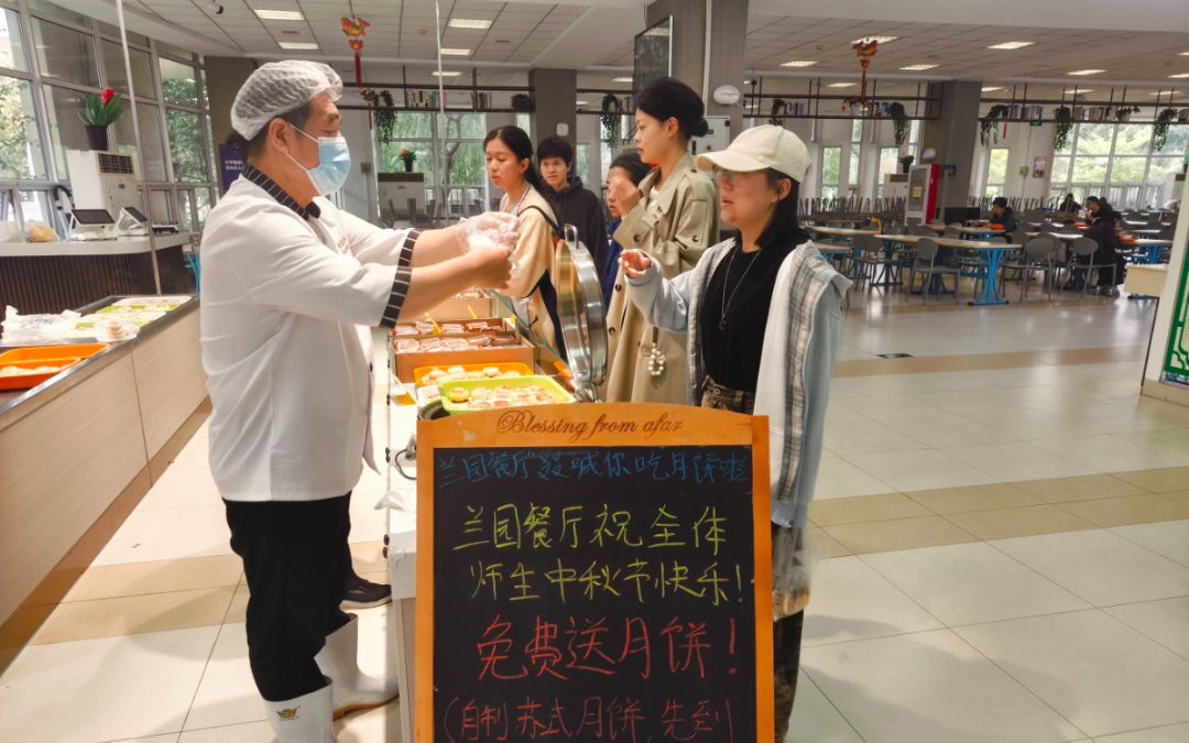 888集团餐饮还专门为留校师生送祝福、赠月饼,不少同学笑着说:“在食堂收到中秋礼,太暖心了!”