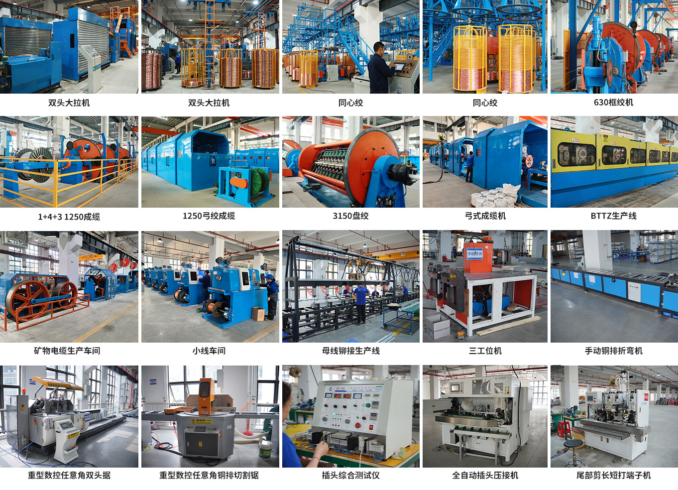 888集团电缆拥有双头自动退火大拉机、双头自动退火中拉机、自动退火中拉机、自动退火小拉机、束丝机、高速管绞机、高速单弓双绞机、框绞机、笼绞机